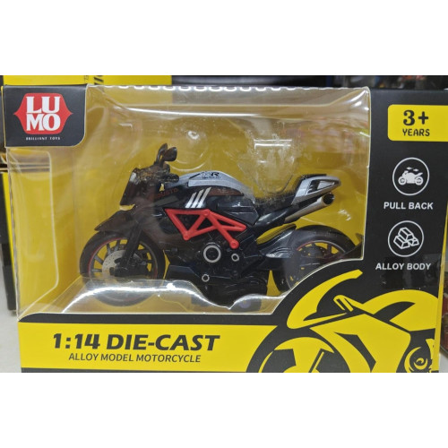 Die-Cast 1:14 Scale Motorcycle Toy – Pull Back Motorbike with Moving Handle for Collectors and Kids (Grey)