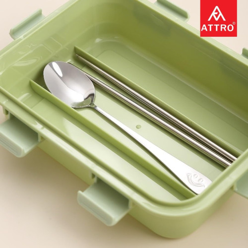 Jupiter Lunch Box with 3 Inner Steel Compartment, 1 Small Container, 1 Spoon & Chopstick Air-Tight Leakproof Heat Water Insulation Design- 700ml+70ml Green