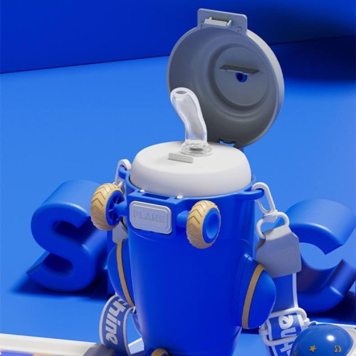 Airplane Water Bottle for Kids with Strap, Sipper and Straw | Leakproof, BPA-Free, 500ml