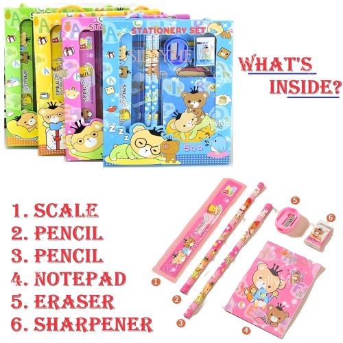 12 pcs Cute Cartoon Stationery Set - Includes Pencil scale, eraser note - Return Gifts Birthday Party for kids - return gift for kids birthday age 6-10 3 4 5 6 7 8 12 6-12 years